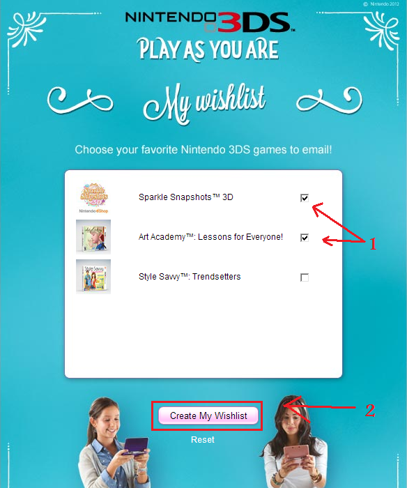 When the page loads, tick at least one item and the click the "Create My Wishlist" button.